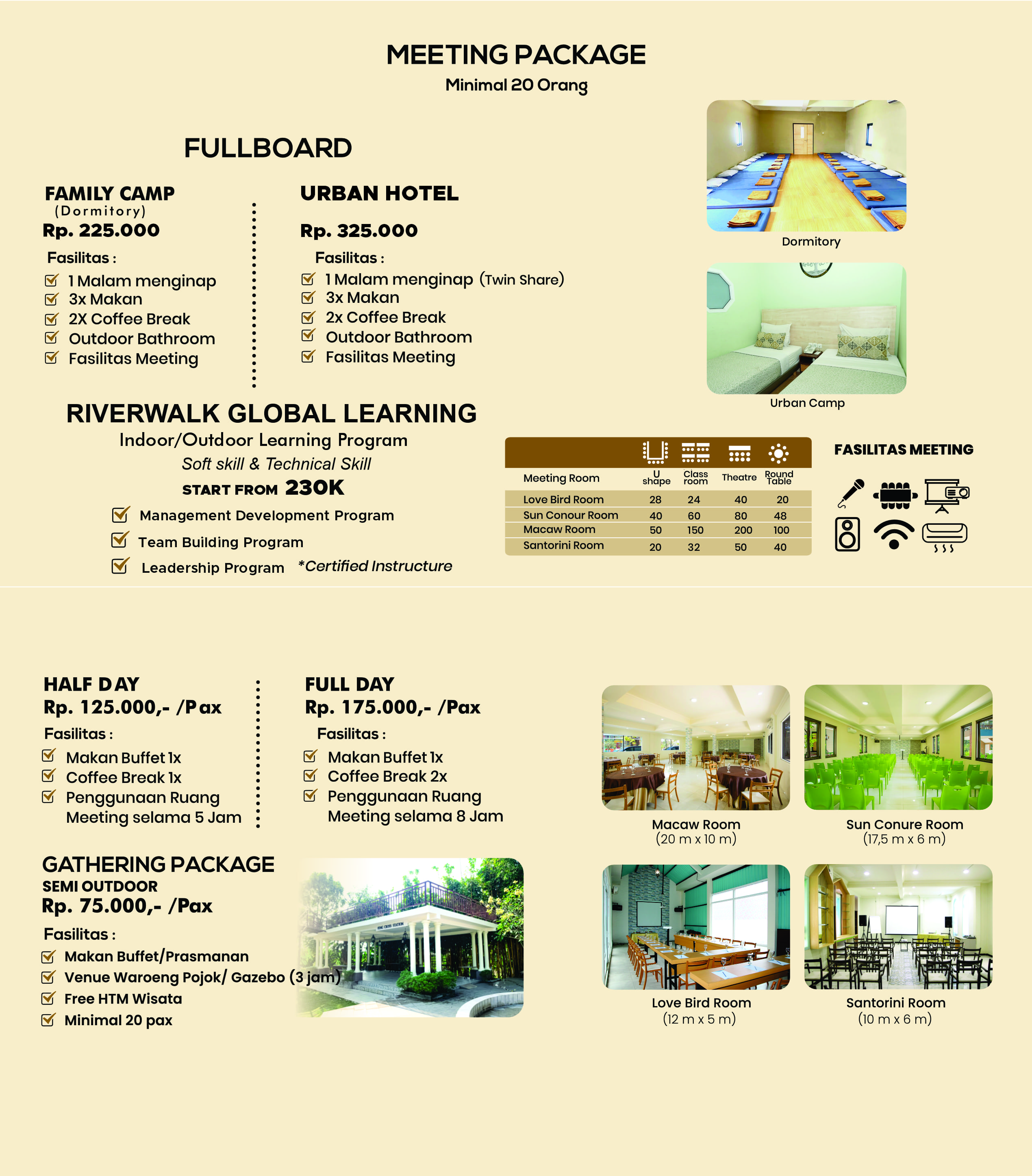 Love Bird Room, ruang serbaguna yang dapat digunakan untuk ruang ibadah maupun meeting room dapat menampung hingga 40 orang. Dapat digunakan sbagai ruang kelas, meja bundar & teater. Terletak di tengah - tengah kolam renang dengan pemandangan keseluruhan River Walk Boja. Dilengkapi dengan proyektor dan sound system yang canggih.