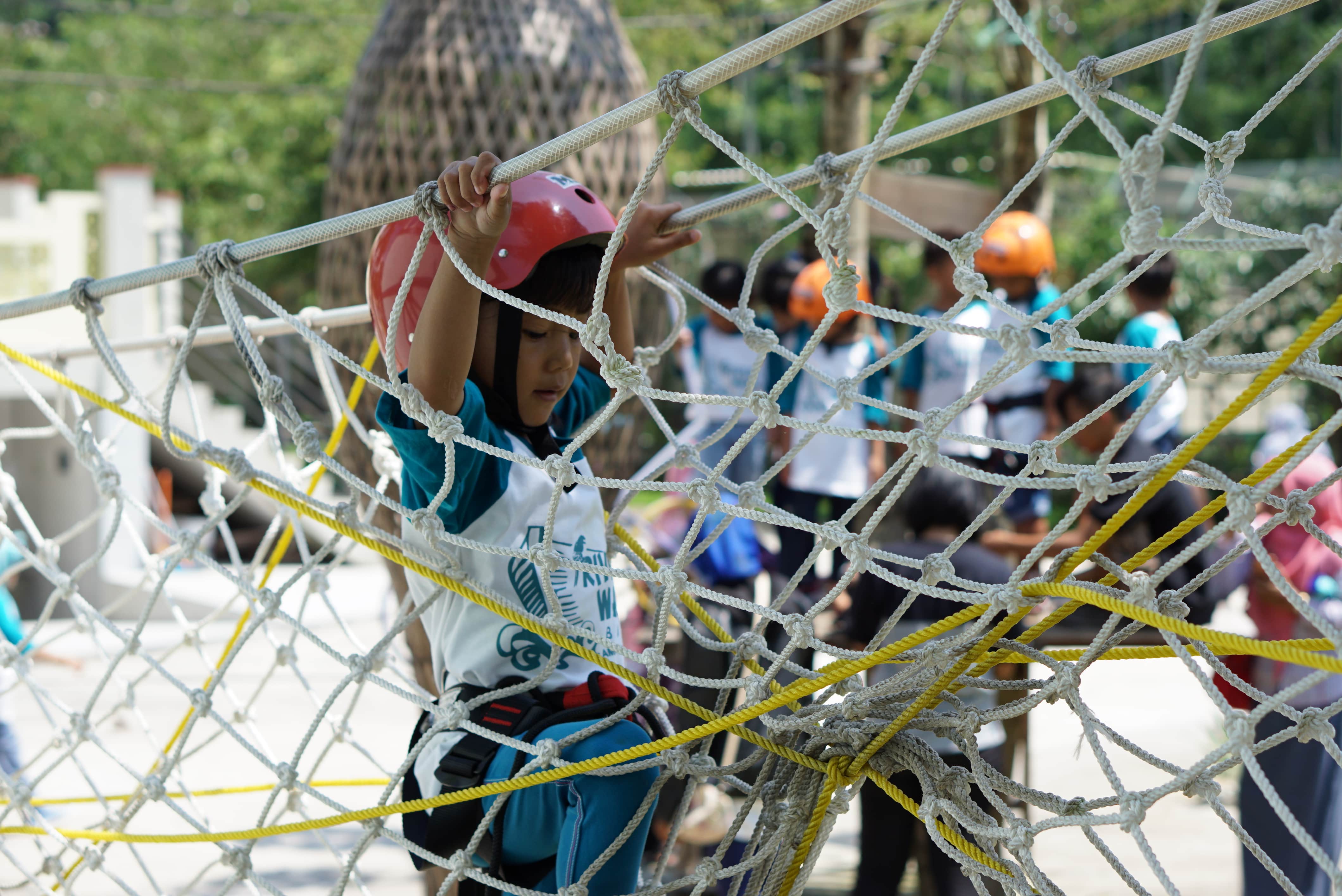 Outbound activities for kids to train their agility by playing mini Flyingfox and high ropes.